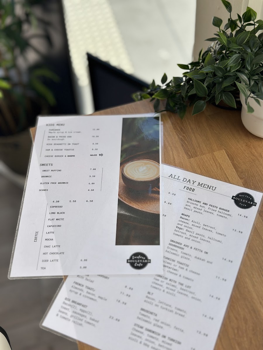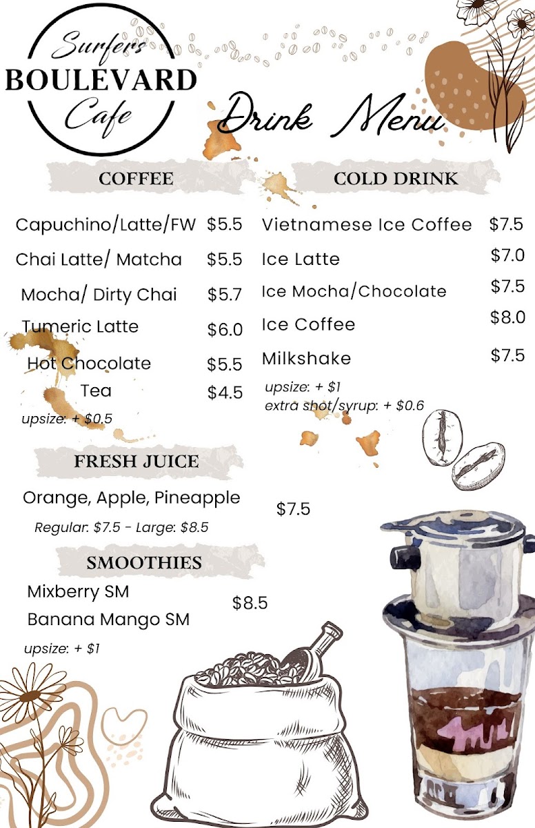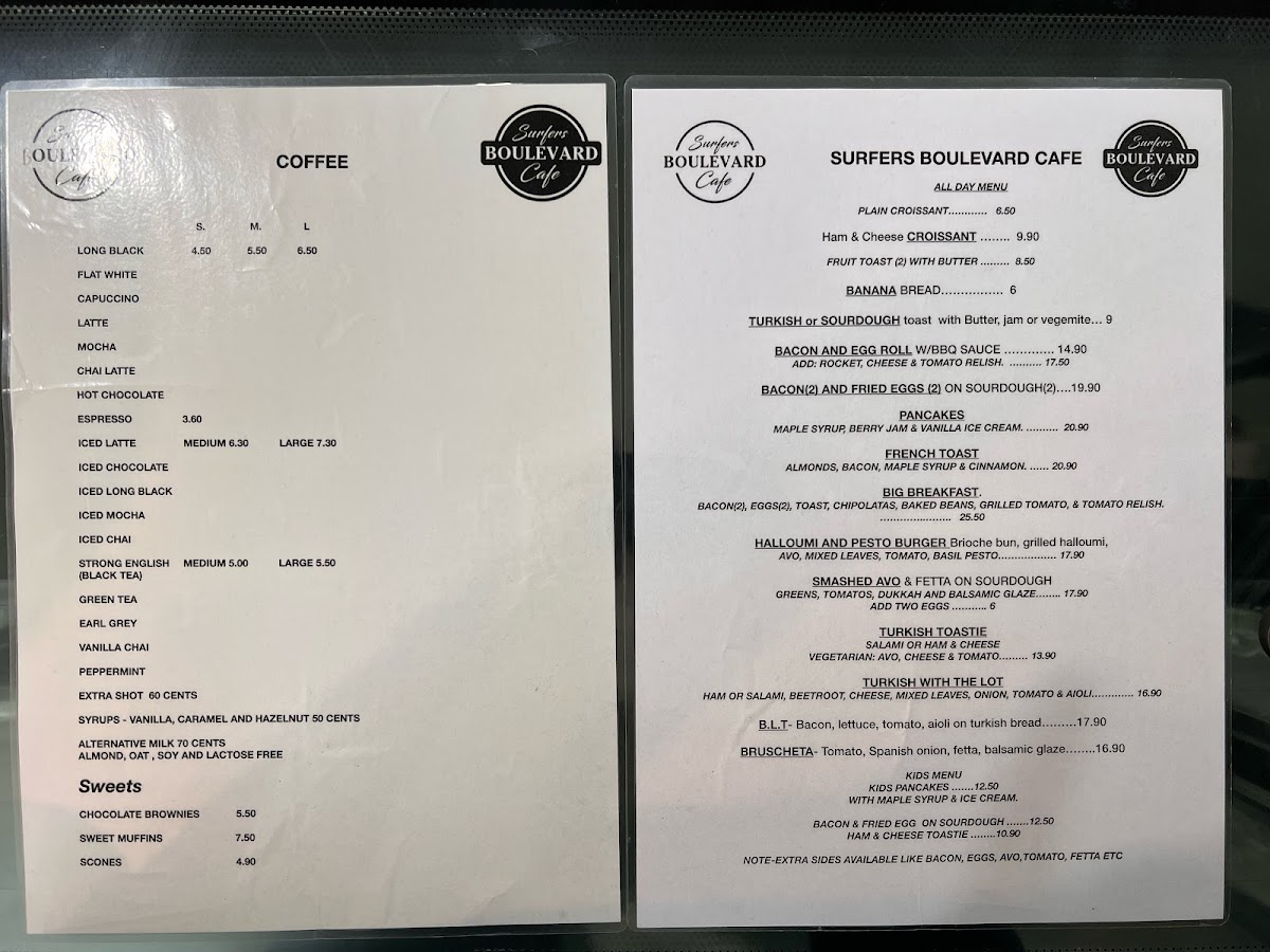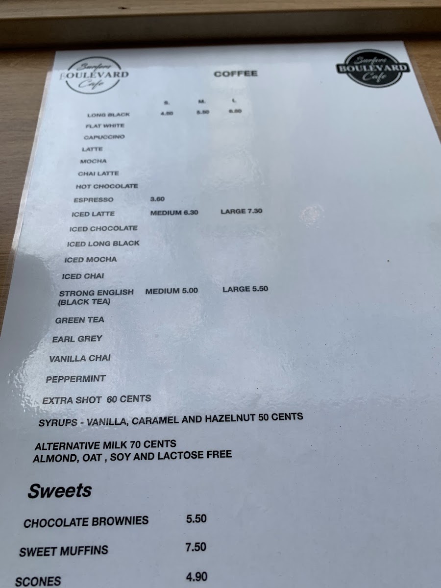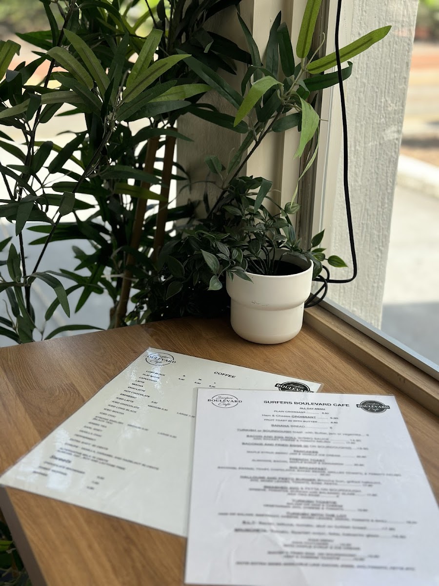 Surfers Boulevard Cafe Menu